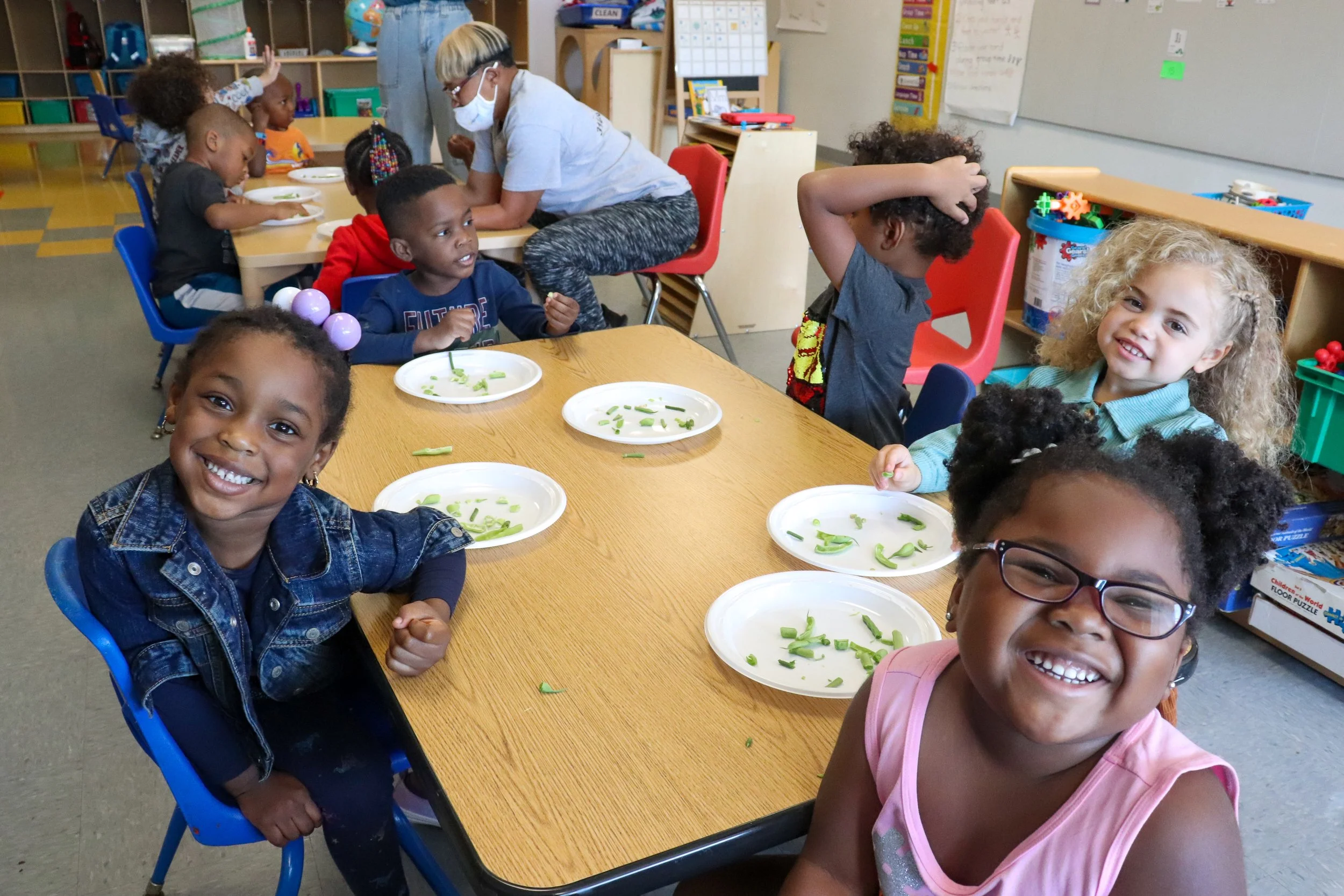 Our monthly Nutrition Program exposes our students to healthy and new foods. By incorporating aspects of STEAM, we are able to introduce to a variety of fruits and vegetables and improve cognitive development.